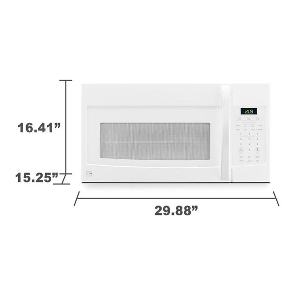 Kenmore over the range microwave with exhaust fan. Kenmore over the range microwaves are great if you have a small kitchen. Relax and enjoy a stress free meal prep time check back when you hear the ding. Installed over the range these microwave ovens free up space on your countertop for other appliances. Whirlpool 1 1 cu ft low profile over the range microwave in stainless steel.